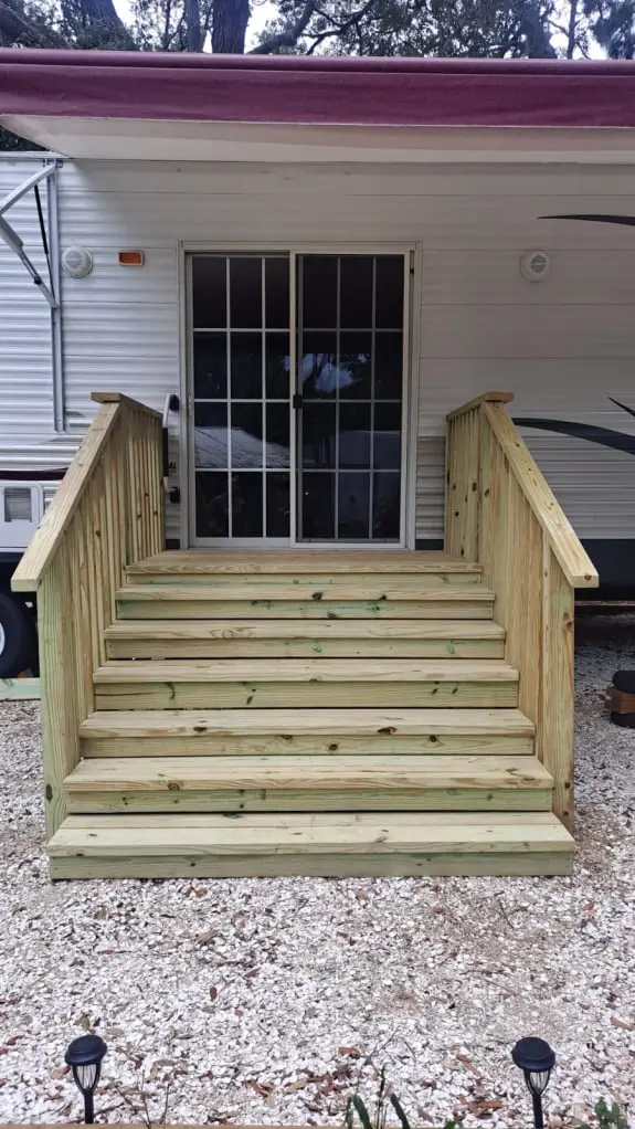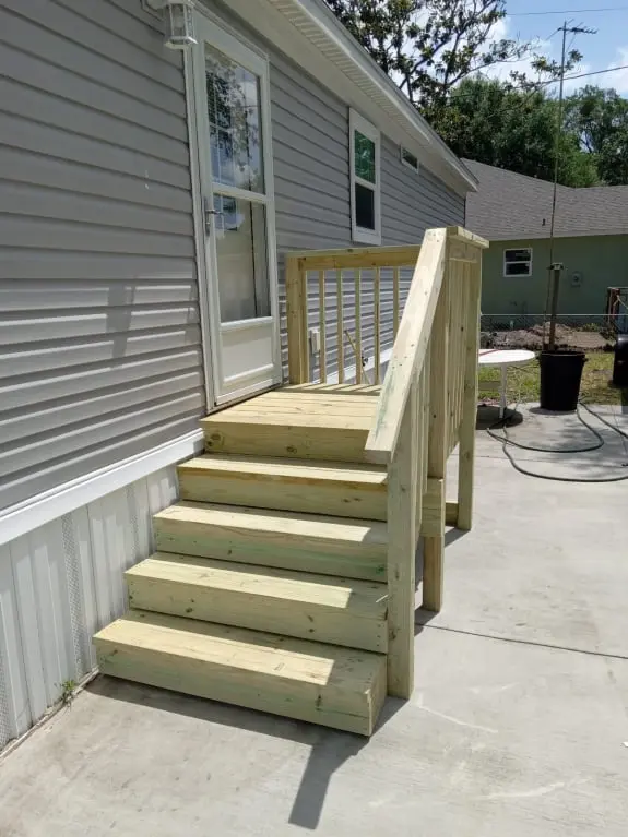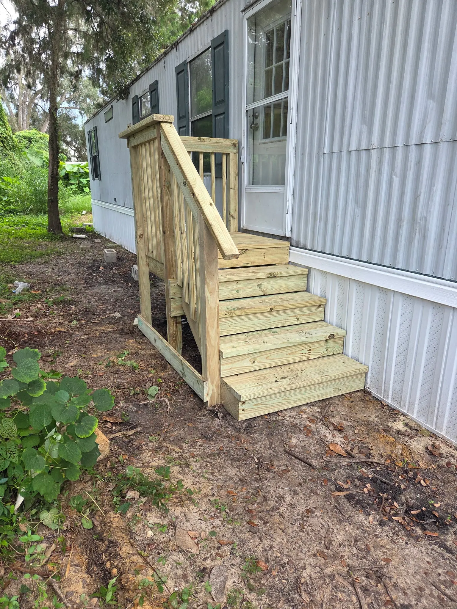 We are a company located in Homosassa Florida in CitrusCounty.  We serve all surrounding areas. We use high quality southern yellow pine that is treated against rot, fungi, decay and termite attack. We offer popular standard size mobile home steps and we also custom build steps and decks of all different sizes. Our decks are screw constructed.